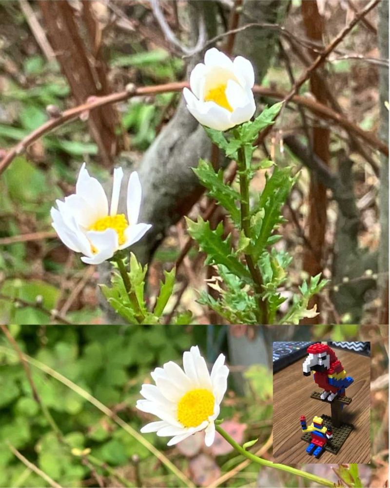 去年の溢れ種から3個花が咲きました😉過去pic見ていたら,お孫ちゃんが作ってくれたオオムと余ったブロックで作ったロボット🤖のpicが出て来たので、過去picですが、