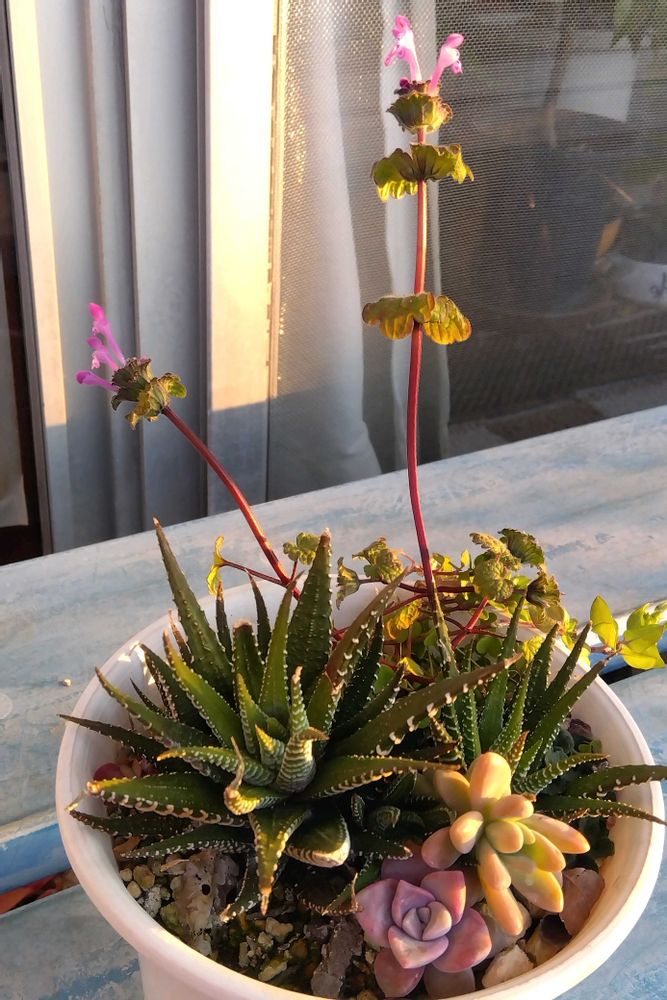 十二の巻とエケベリアいつの間にか花が咲いたホトケノザ