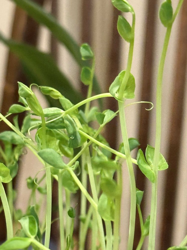 iPhone16にしたらすごい!豆苗の髭まで撮れるわ。