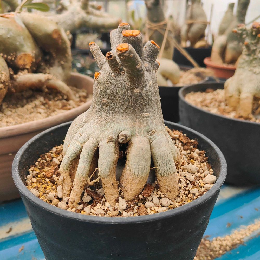 以前 #アデニウム 発根ショーを行ったタコ足ちゃんの植え替え完了!