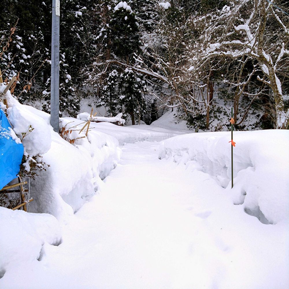 2/3に黒い舗装が見えるまで除雪した道なのに、また30cmほど積もりました😰