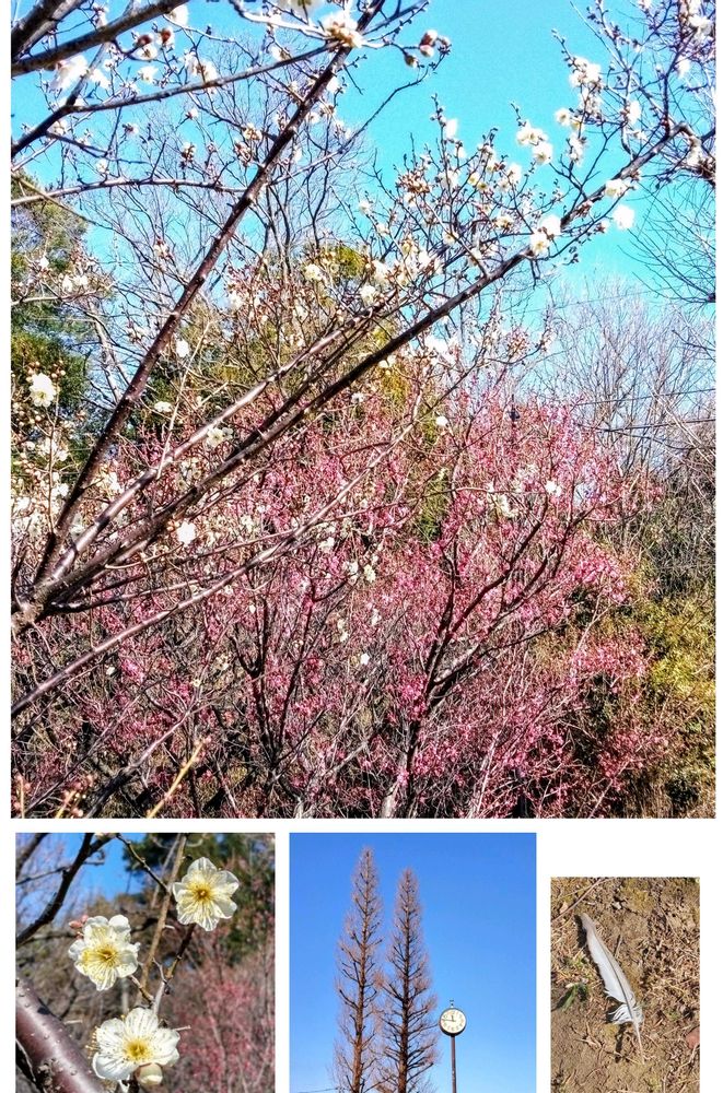↙️白梅⬇️メタセコイヤ↘️鳩の羽根が