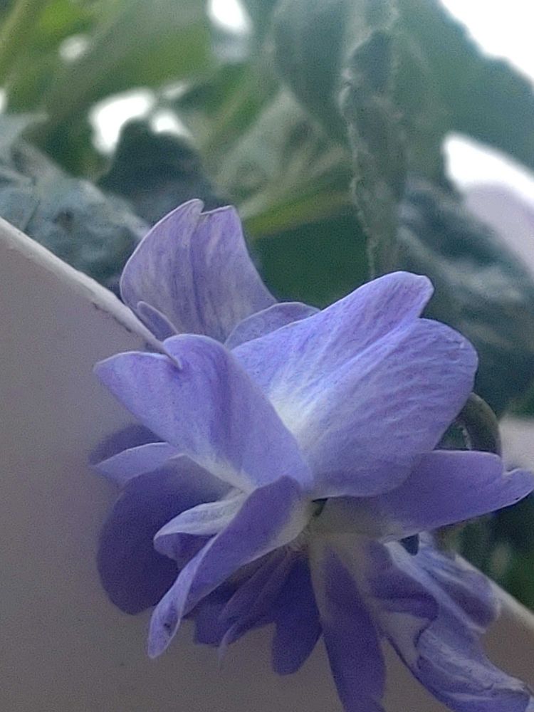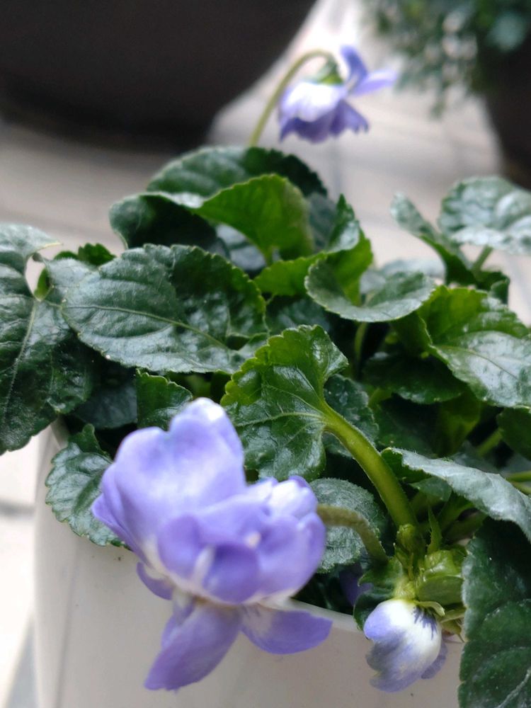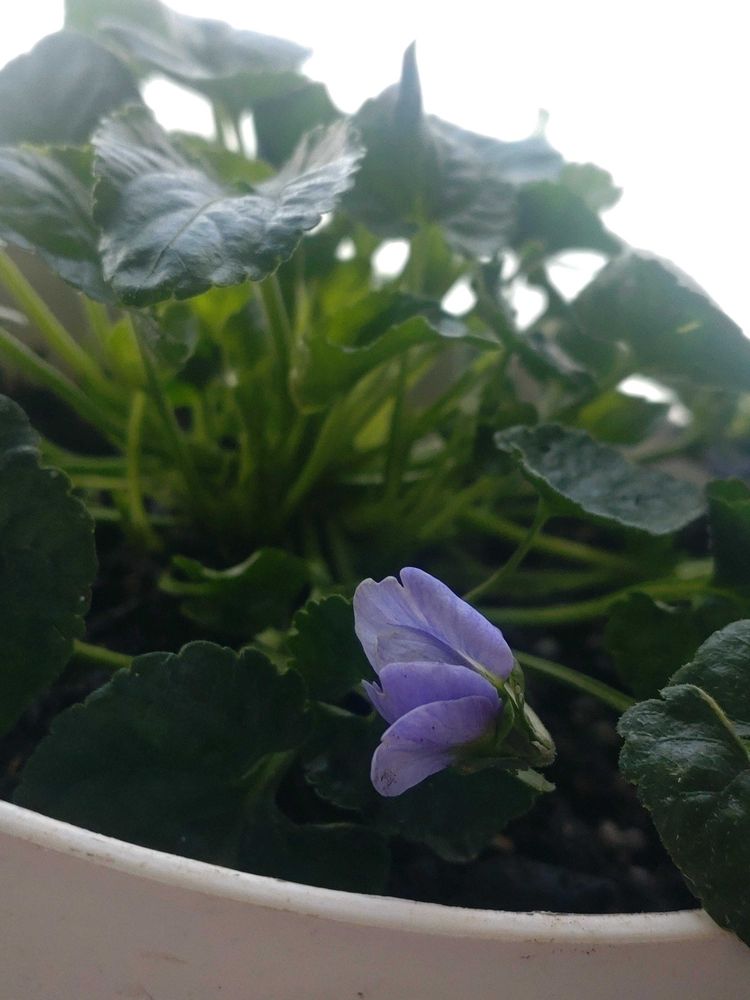 先日 生協に月1出店される出張お花屋さんで 八重咲きパルマすみれ オーロラをお迎えしました🤍💜🌿