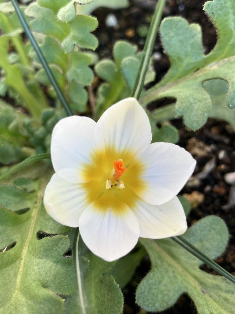 あちこち葉っぱは出てるんだけど、これ一輪だけ😍後確か黄色のクロッカスがあったと思う🤗