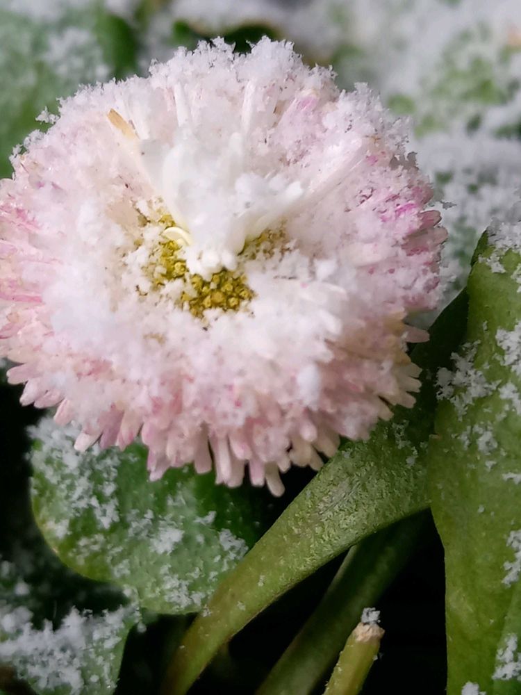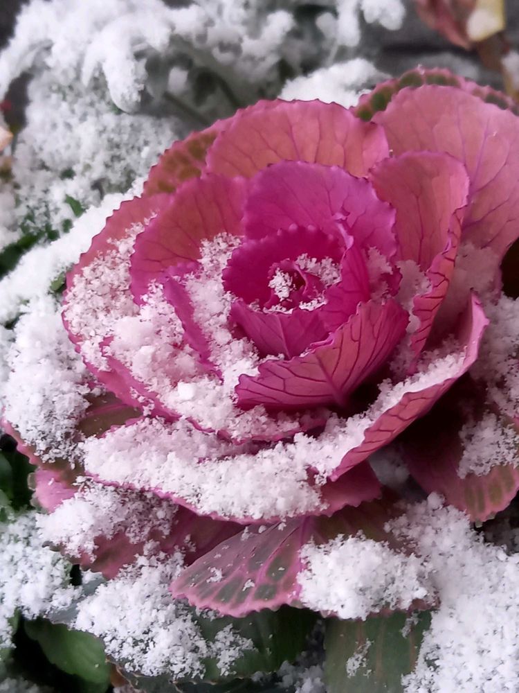 わぁ、雪をかぶって綺麗な葉牡丹ですね~