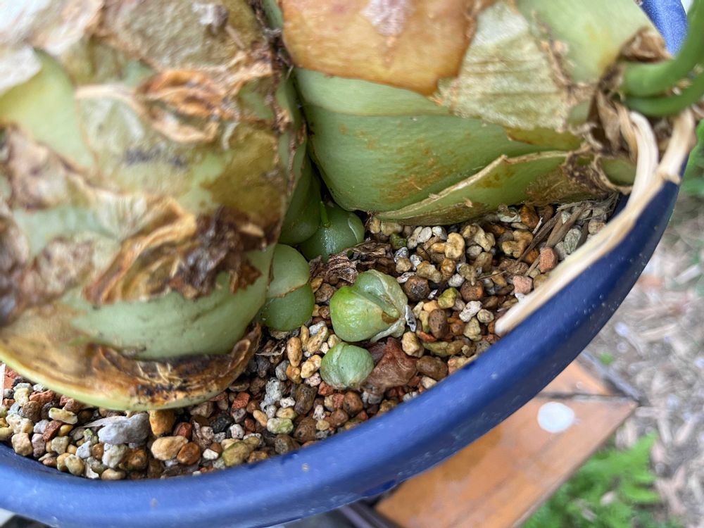 腐りかけた表面の皮を剥いで置いておいたら出てきました。