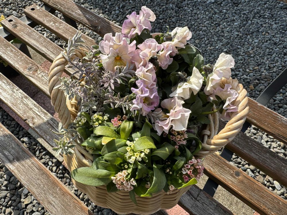 ナチュラルなカゴに、優しい雰囲気の寄せ植えですね❣️👌