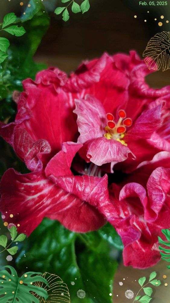 今晩は 一番めのハイビスカス🌺素敵ですよ。🌺紅孔雀と言うんですね。八重なのかしら?