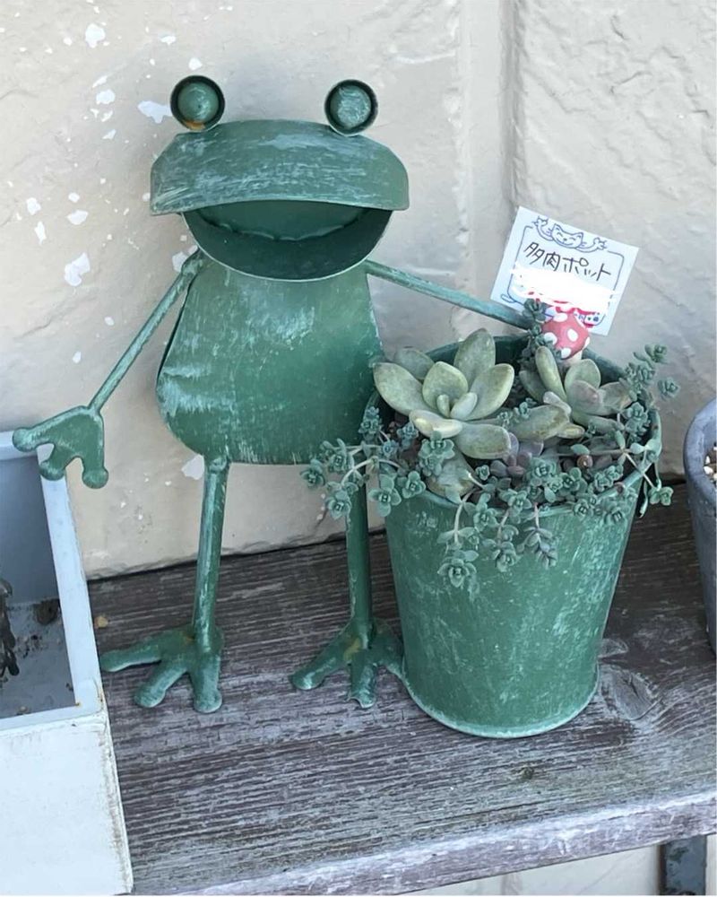 ブリキのカエルさんいいですね🐸多肉さん映えますね♡└( ゚∀゚)┘♡