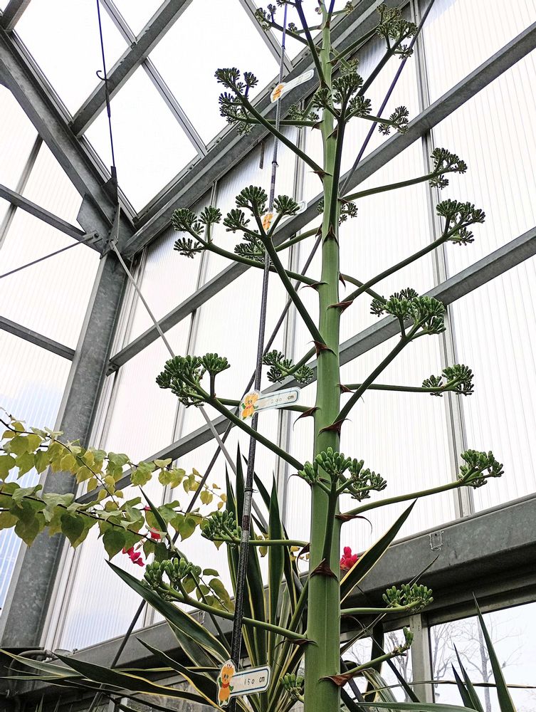 💚アオノリュウゼツラン💚の花が 3メートル半に伸びて〜開花し始めています(黄緑色の小さくて地味な花)