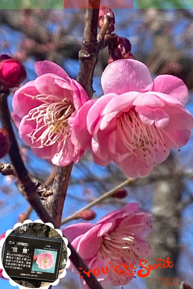 神代植物公園の梅園では八重寒紅、一重寒紅、大盃が咲き始めていました😄🩷💞