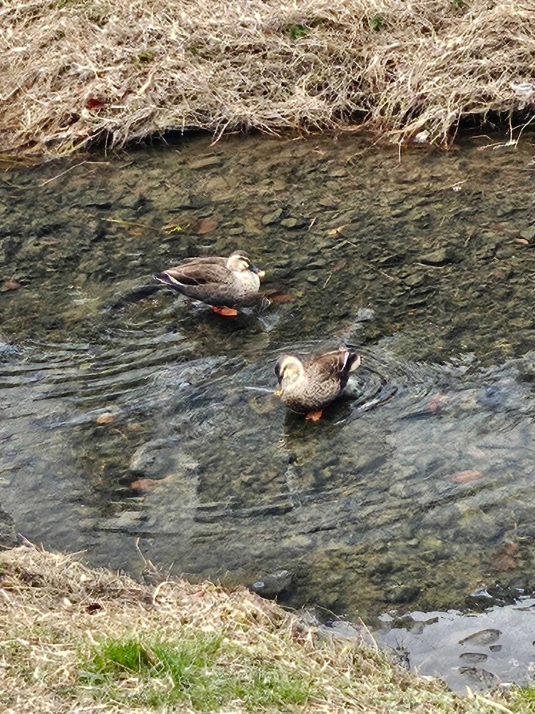昼から~いつもの図書館に、行きも帰りも車で、丁度千姫の小路の側の橋の上で信号待ち 川の中で 鴨さん達たくさん泳いでて🦆🦆