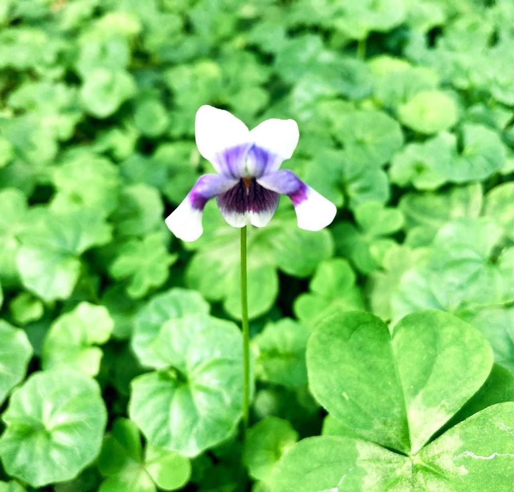 地を一面覆うように繁殖した蔦の葉の隙間から、ピョン!と一輪だけ可憐な顔を出していた、「蔦菫(ツタスミレ)」で、おはようございます😃🌱💞