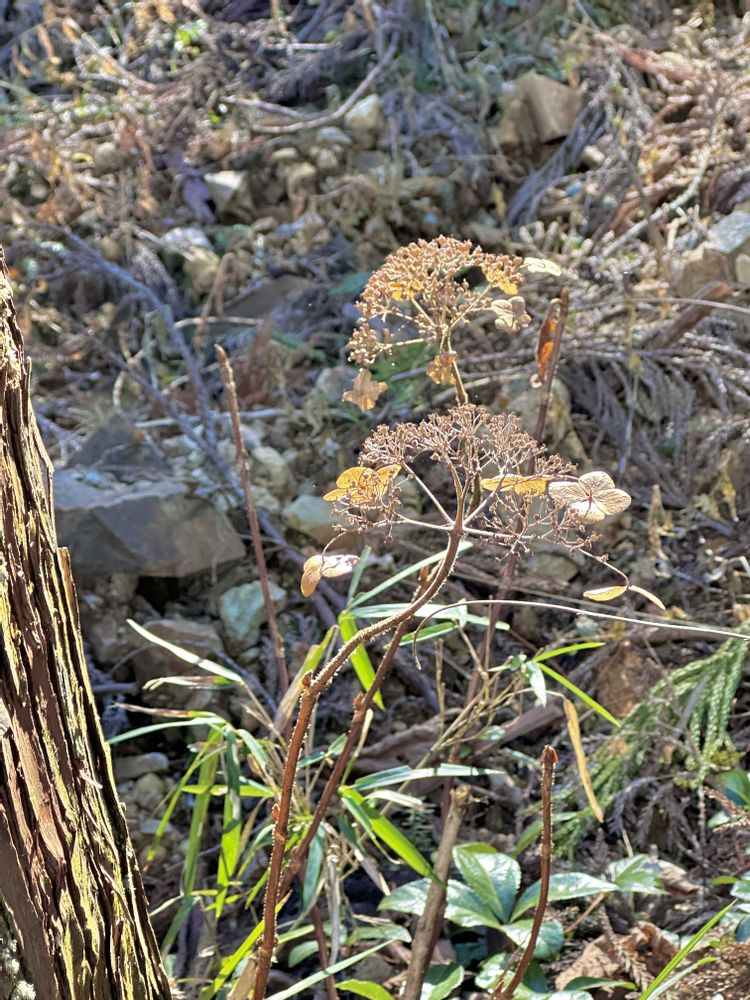 何もない冬枯れの山の中、ヤマアジサイの可愛く枯れた姿を見かけると、ついつい📱してしまいます😅