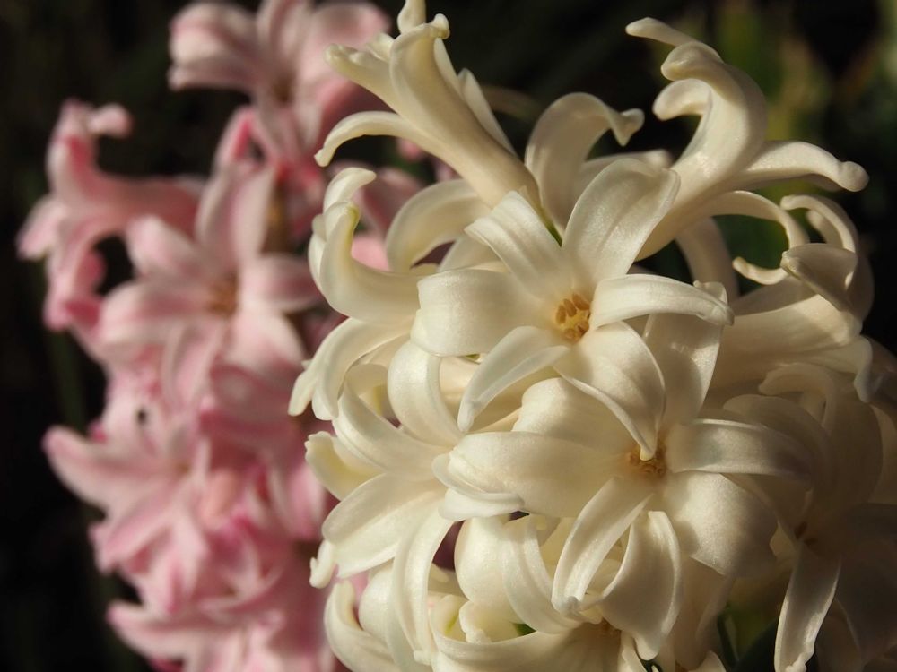 可愛いピンクに純白のヒヤシンスさん✨✨素敵です〜💓春を感じます☘️