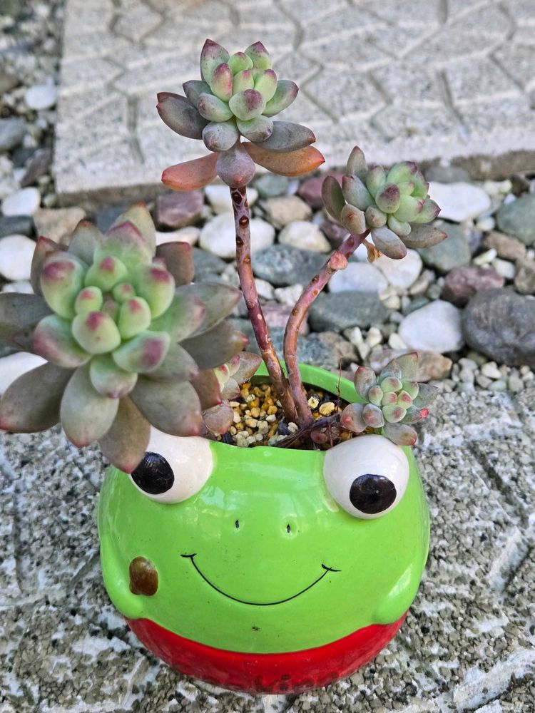 雨ざらしなので多肉さんがちょっと汚なくなっちゃって😆🐸鉢は色も剥げず丈夫ですね🥰