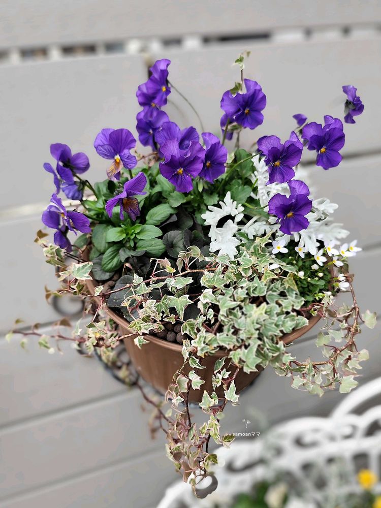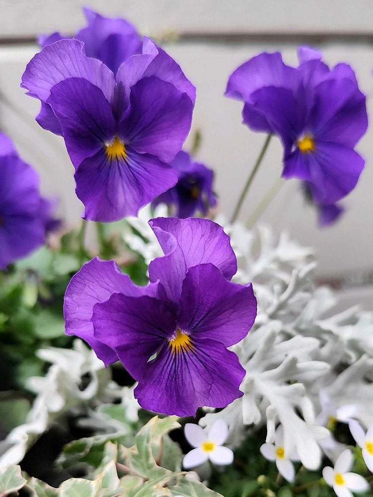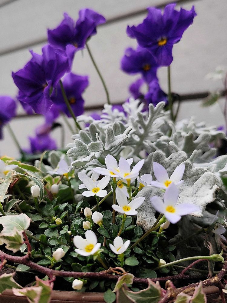 シルバーリーフやヒナソウがビオラを引き立てて良い関係ですね💜🤍💜💚💜