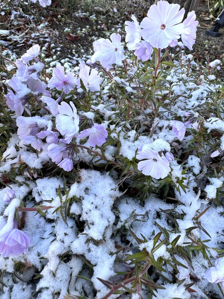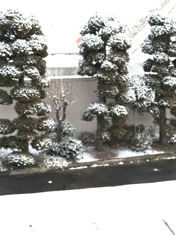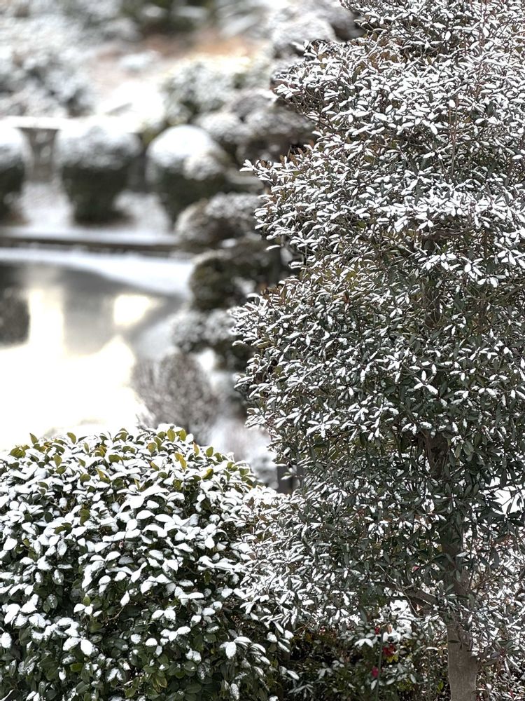うっすら雪化粧で庭が一段と綺麗ですね。