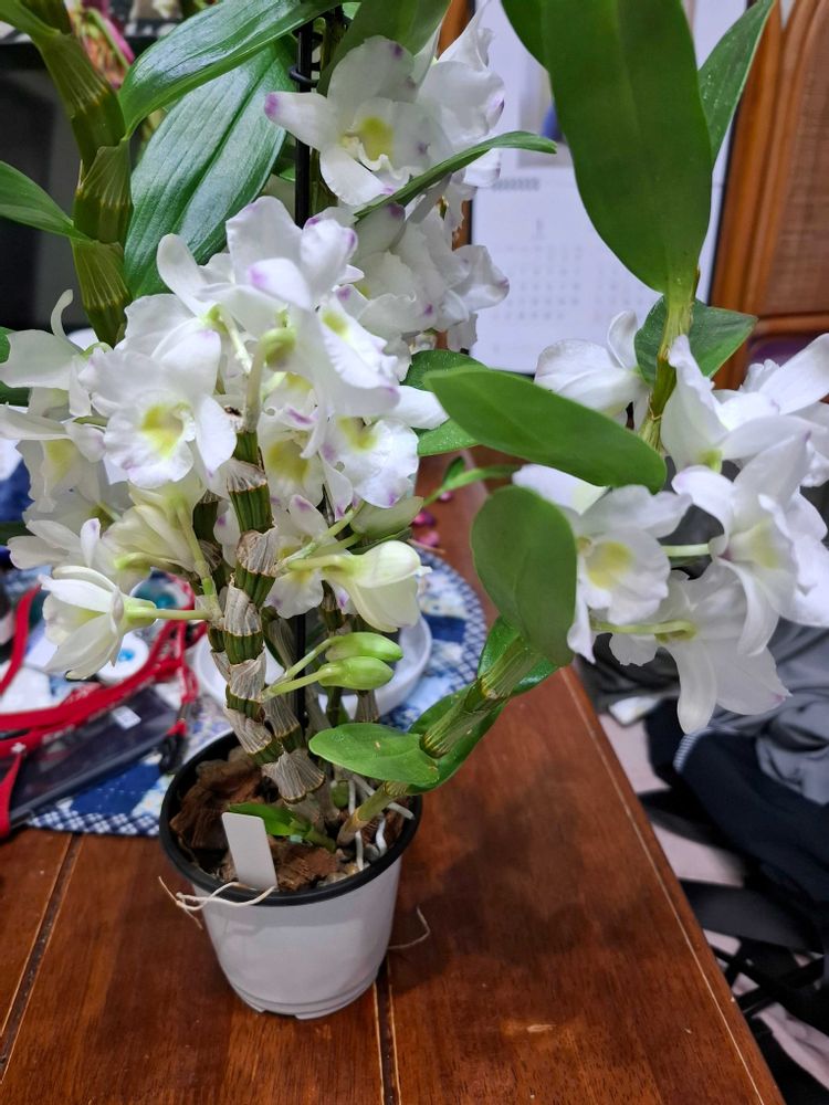 せめてもの慰めに、夏越しして咲いたデンドロビウムを載せました😭