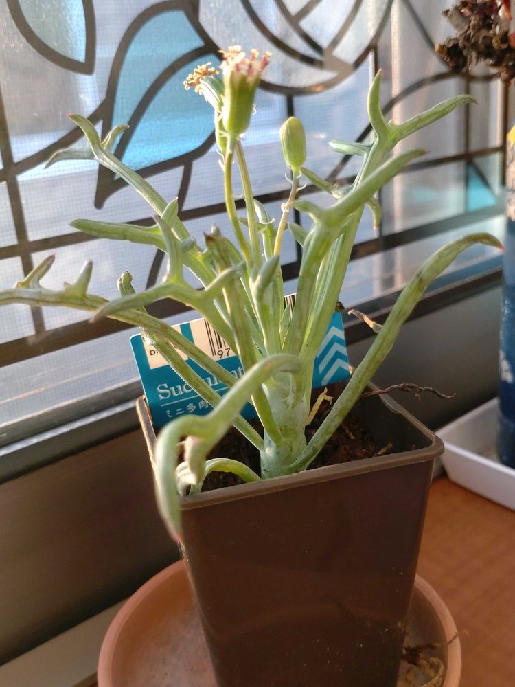 調べたらセネシオ属エルクホーンらしいです。だいぶ水不足だったみたいでしおれていましたが、ほんの少しだけ水をあげたらシャッキリしました。