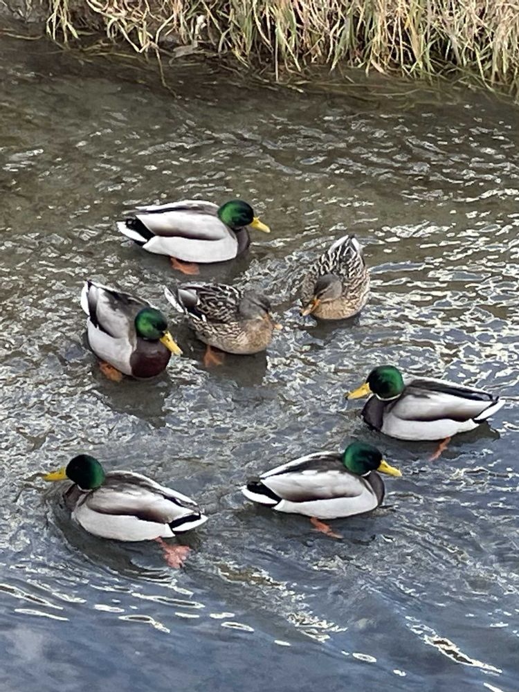 最近、散歩道の川にマガモたちが居ます🦆🦆