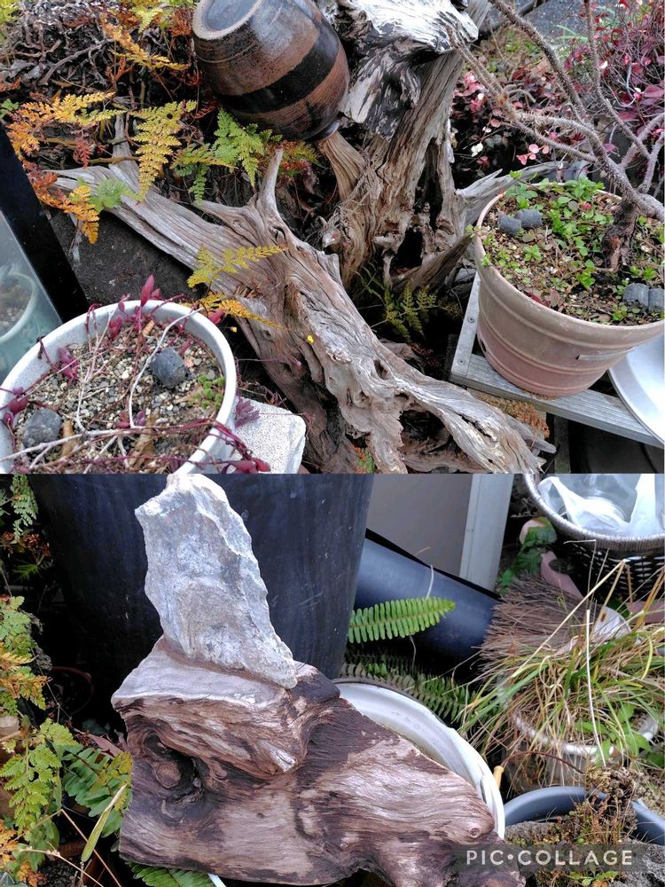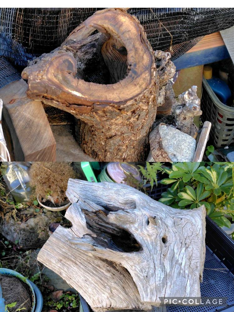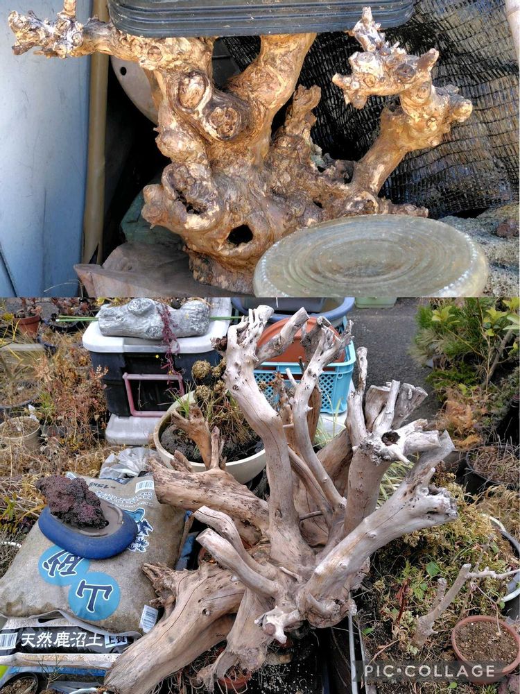 盆栽用語で 舍利(しゃり)と言う 物があるけど わざと 皮をむいて 白骨化したものです 自然にできた白骨化には ロマンがあります😊