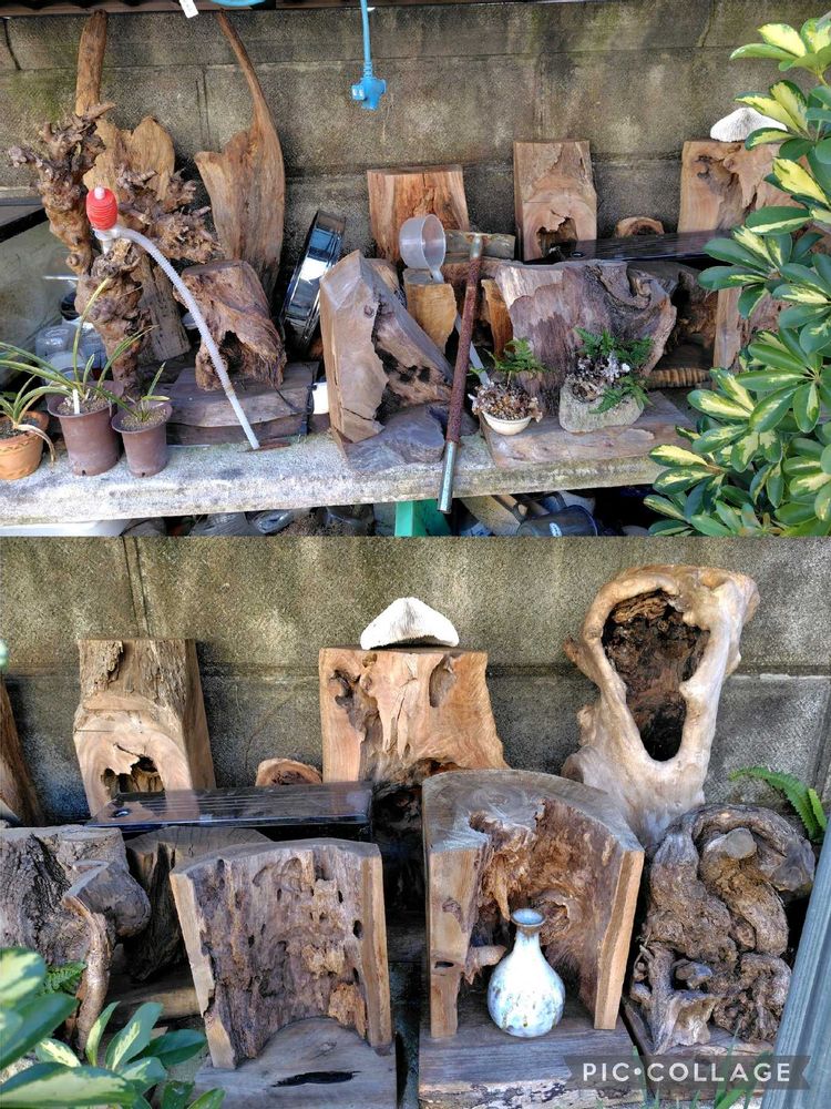 ツツジの 根っこの 絡まっているものなど 素敵です ニスとか漆を塗って磨いておくんです😊