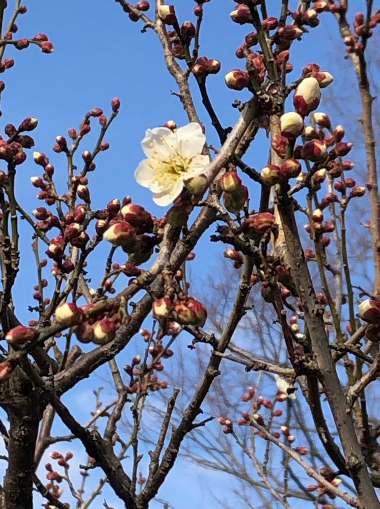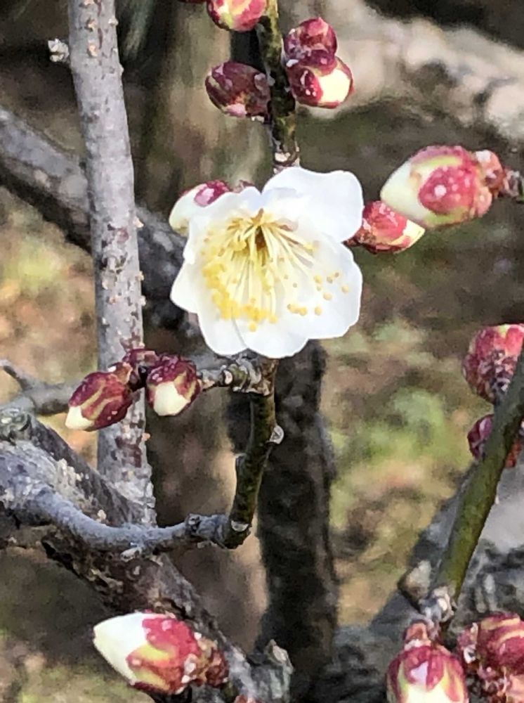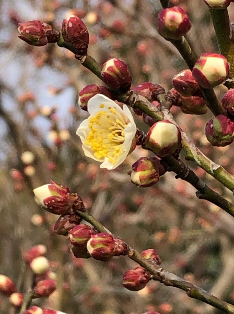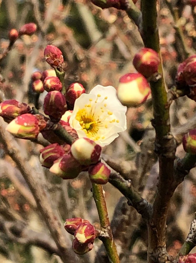 立春も過ぎて、白いお花「ウメ(冬至)」をパチリ!📸🌼😊🤗🌞✌️