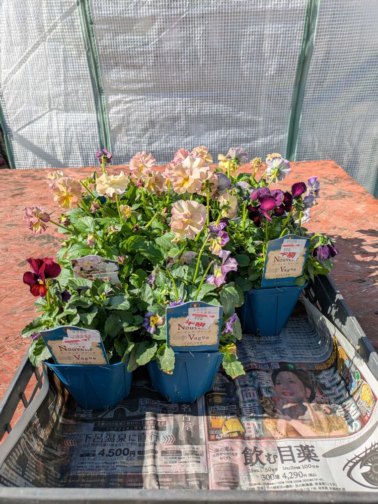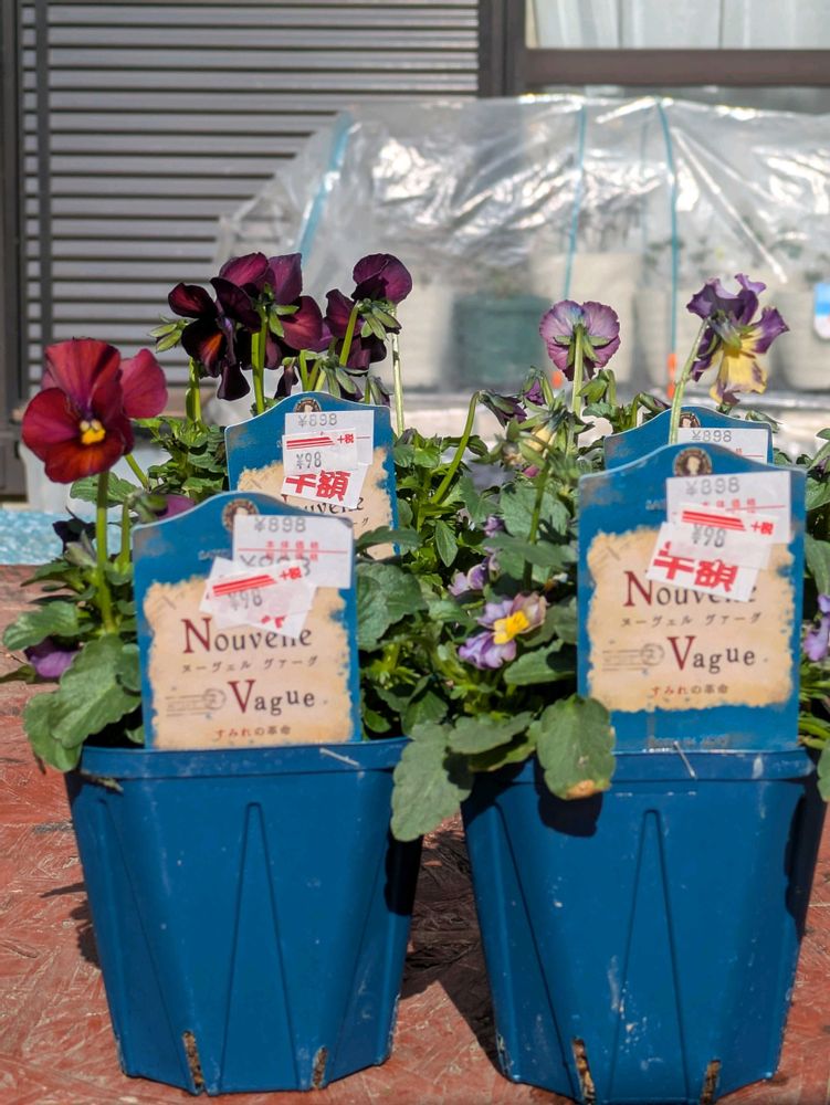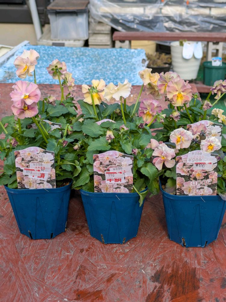 サトウ園芸さんのお花ですよ。普通なら4ケタ😂お迎えにも勇気がいるのに信じられないこのお値段🤣🤣通り過ぎる方も多い中、一人座り込んで品定めしたあたし😅一昨日残り少なくなったのに追加されてた昨日。知ってるの方は爆買いですよね😂