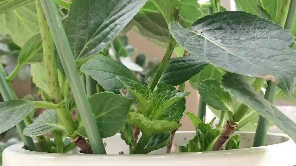 母の日にプレゼントした紫陽花に新芽がたくさんでてきました✨