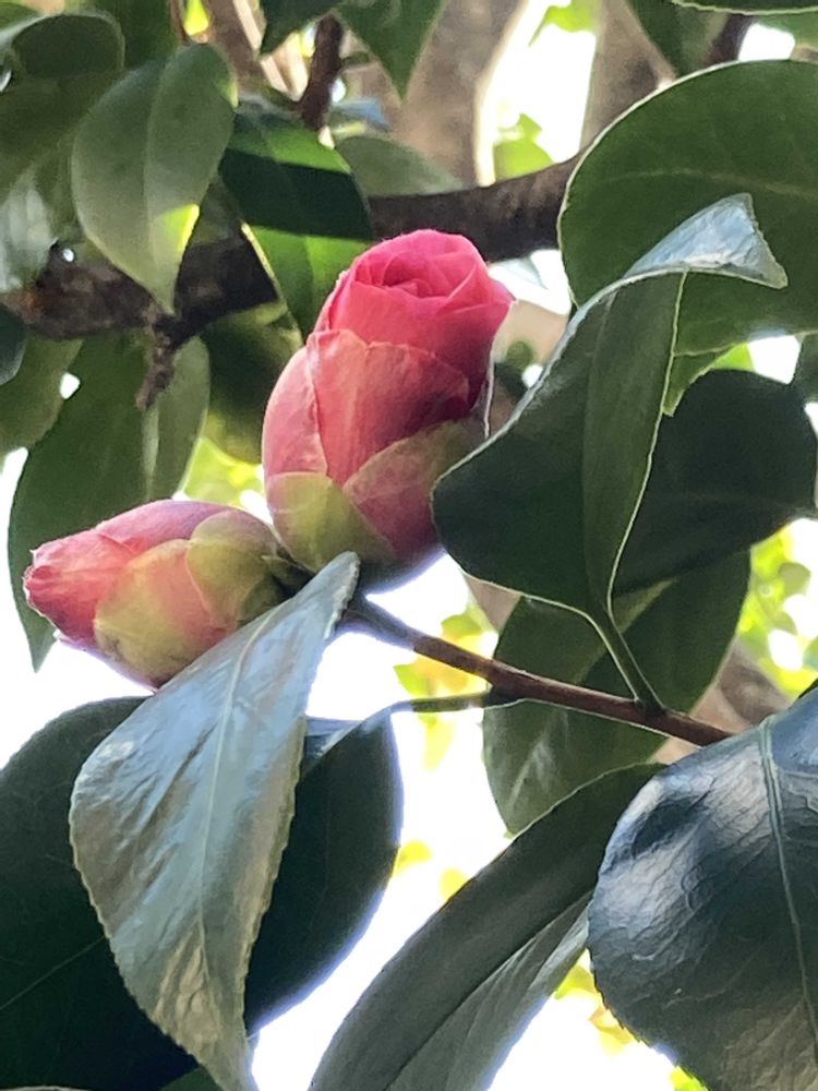 3月にならないと開花しない庭のツバキに蕾をみつけました
