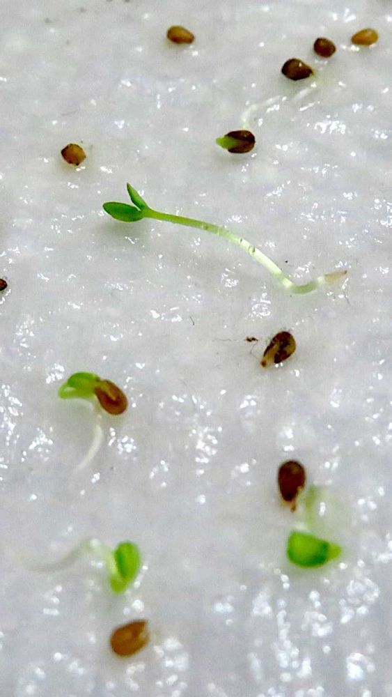 濡らしたキッチンペーパーの上に置いて、時々霧吹きをしてたら芽が出ました😄