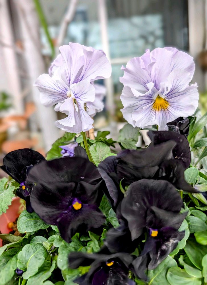 ①ノンブランドパンジー②ムーランフリル 食べられるスミレ③ピンクは絵になるスミレ④雪帽子パンジー⑤小さなツララ