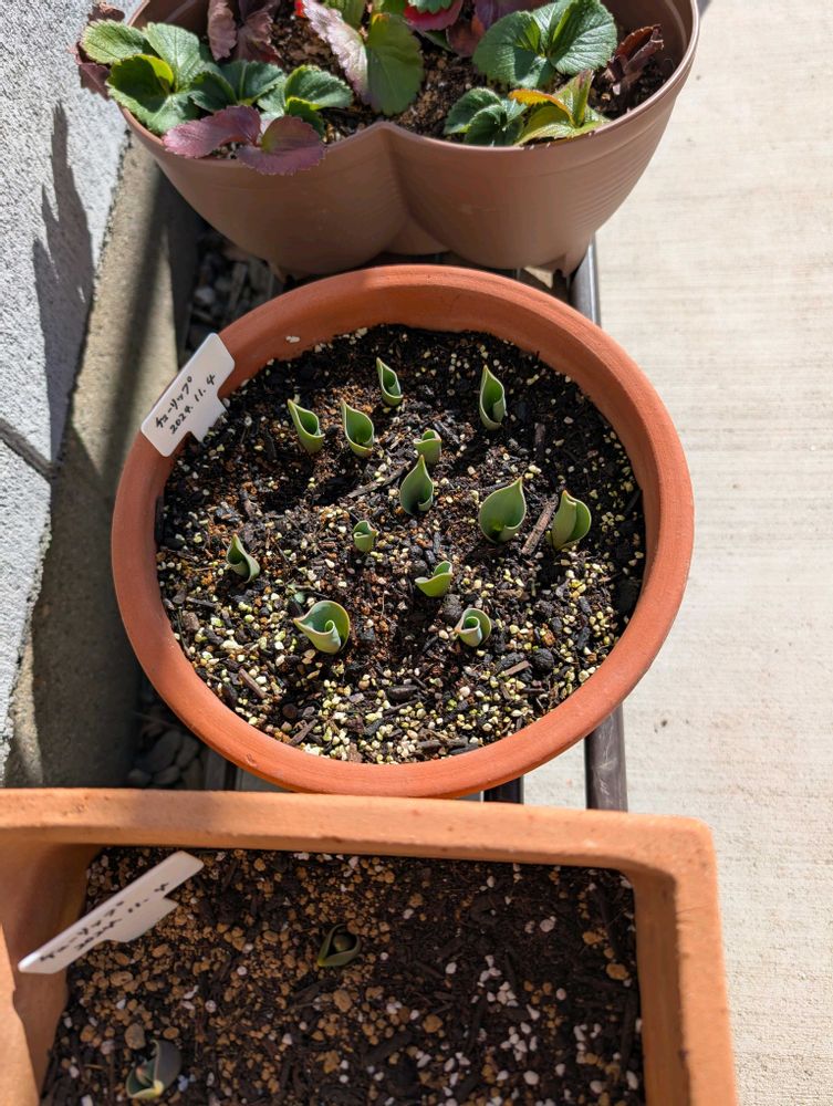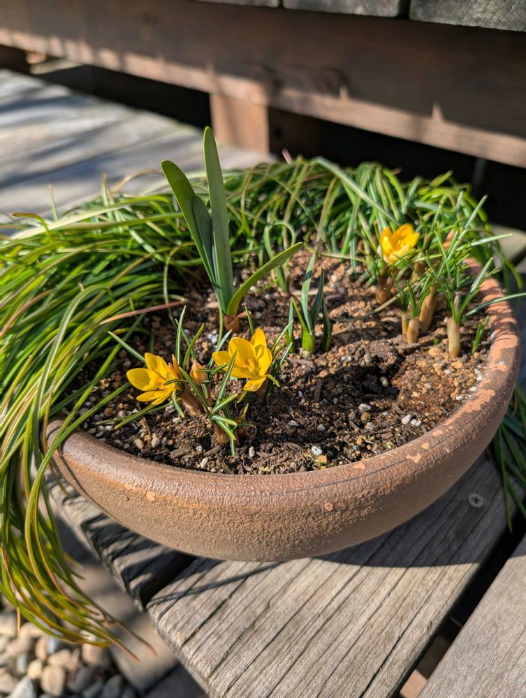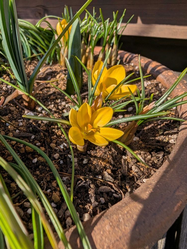 ①②植えっぱなしの球根たちです。早咲きクロッカスが咲き始めました☺️(他ムスカリ&水仙)