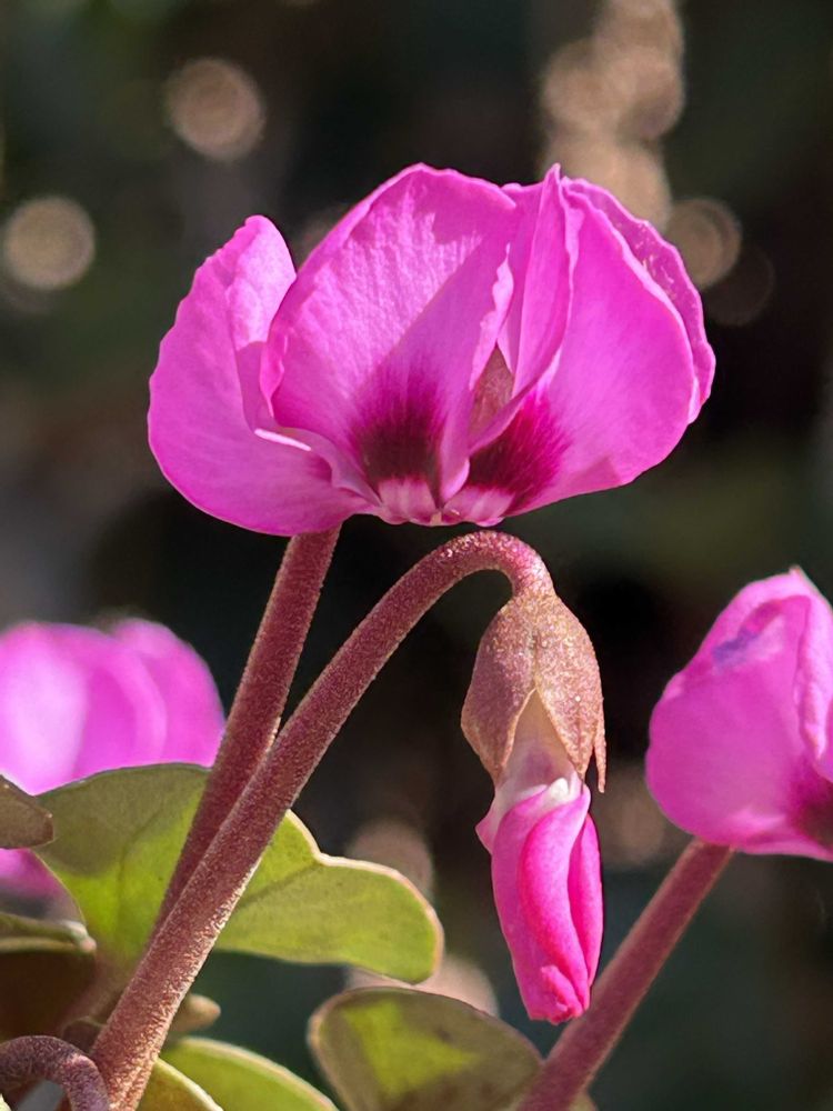 我が家のシクラメンは、葉が少ないので、花が自力で立っていられなくて、ぐんにゃり横たわっています😅