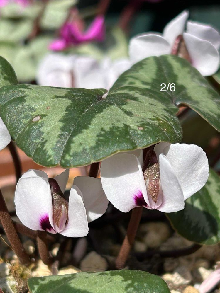 原種シクラメンは花は勿論ですが葉っぱも面白いですよね〜沼にどっぷりかも〜🤭