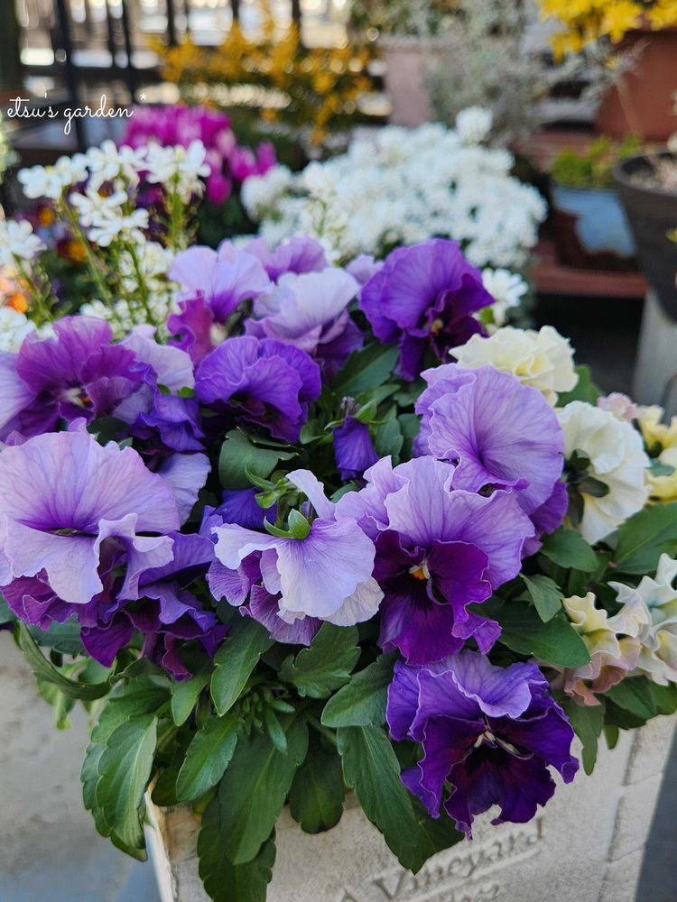 Etsuさんの小輪パンジー わらく,パンジーマシェリマダム,フリル咲き小輪パンジー ペルクレアの投稿画像