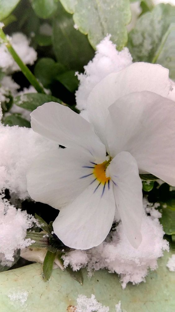今朝九時過ぎから降りだした❄️がビオラをすっかり覆ってしまいました。