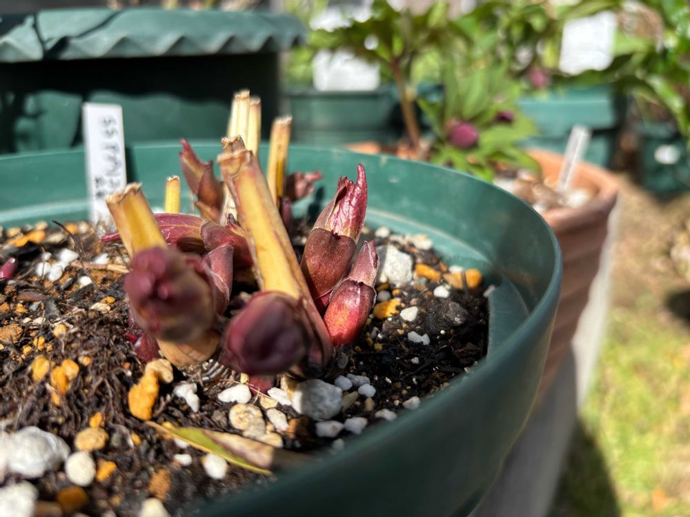 さん 見てみたところ今の季節でも5センチくらい茎を残して葉はとっても良いとのことでした☘️今年はいつまでも暖かくて新しい葉が伸びていたり蕾の周りの苞葉も大きいそうですがそういうのも取っても良いとのことでした🌱