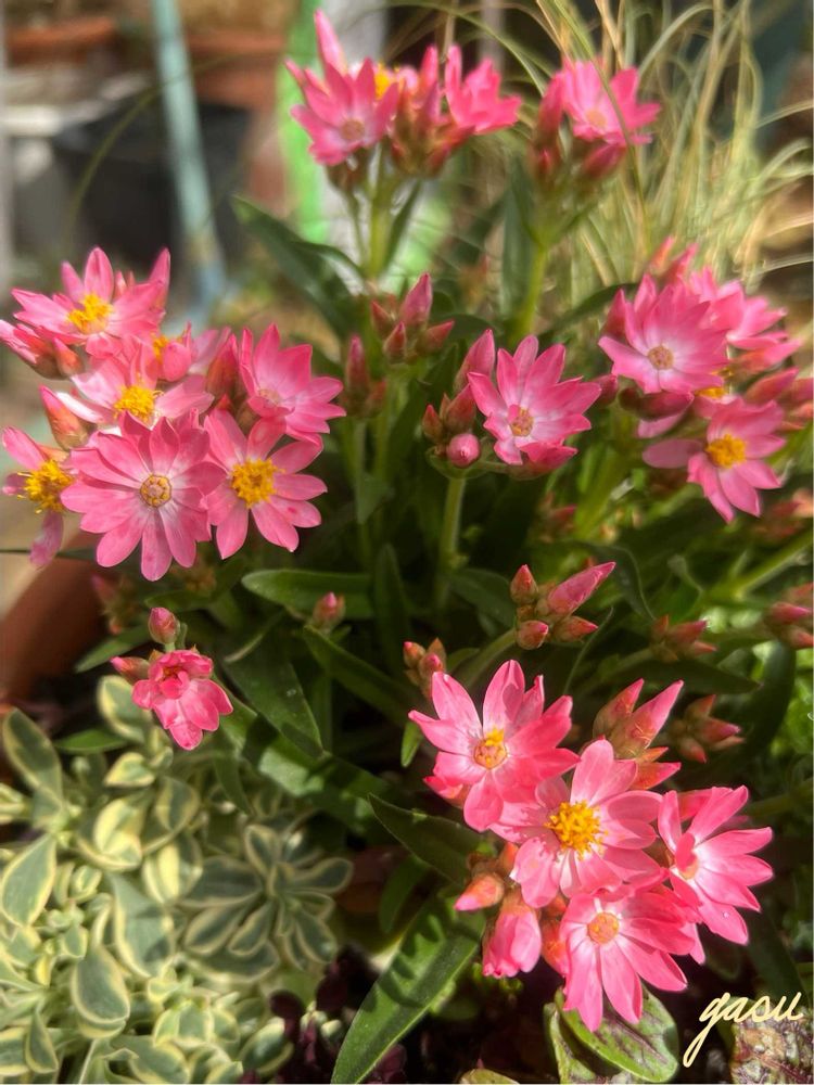 ③④まだ先日投稿したばかりですがヘリクリサム・ローズビューティー💕 我が家ではこの時期1番の特等席、南のハウス内なのもあって花数増えてきました🎶 もう少しゆっくりでもいいけどなぁ🤭