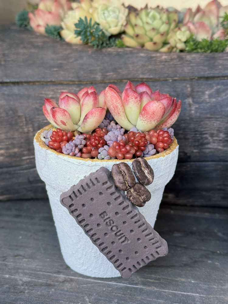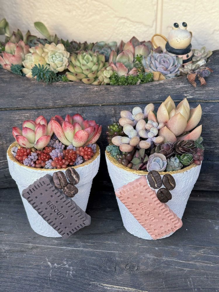 リメイク鉢が完成❣️クッキーを目立たせたかったからこんなリメイク鉢になりました😁
