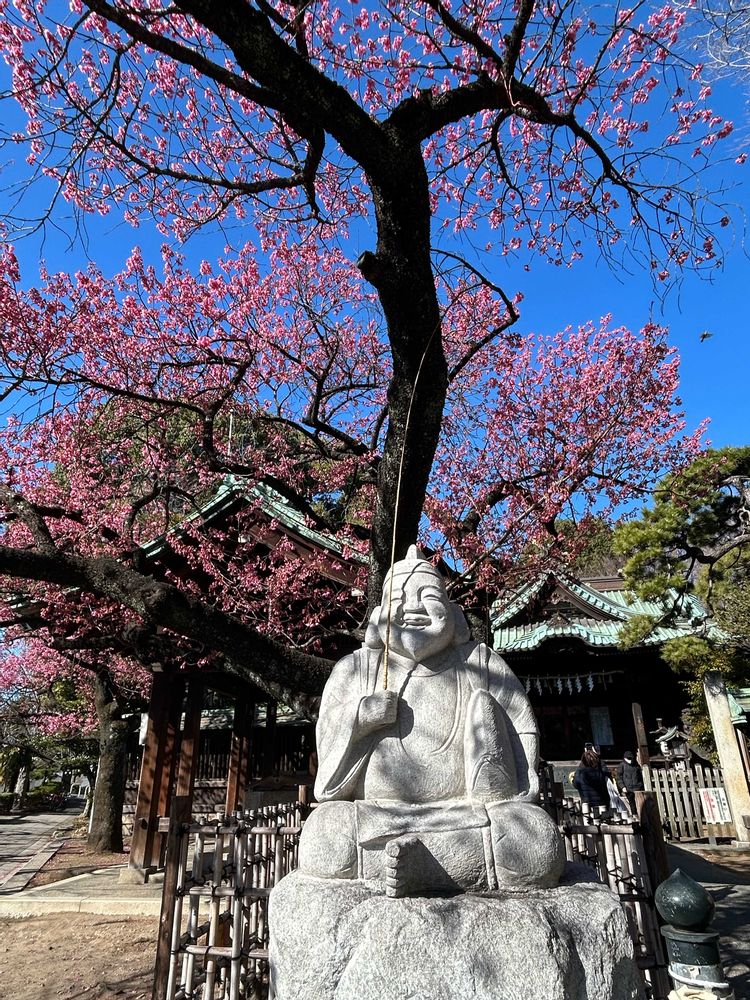 品川荏原神社の寒緋桜が満開です🥰