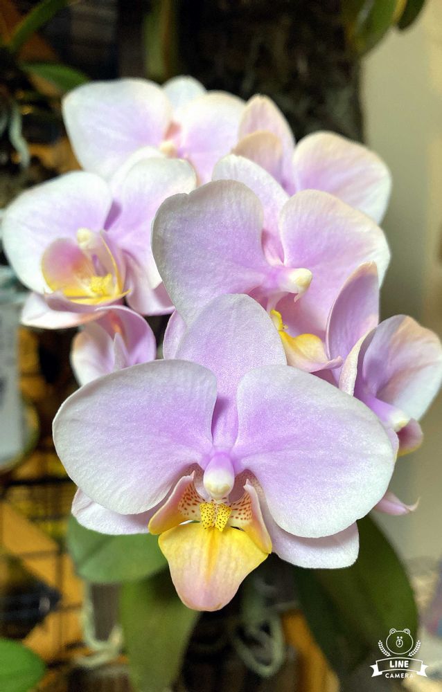 淡いピンクとリップのオレンジが綺麗な胡蝶蘭🥰