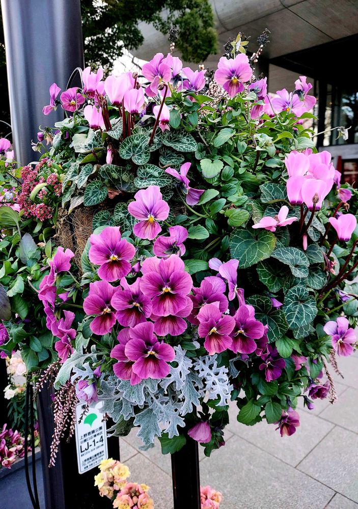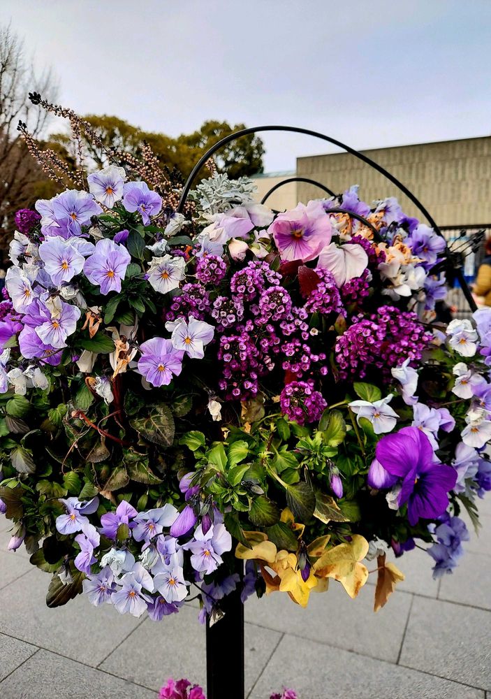 お出かけした美術館前に飾られていた今日のお花パンジーのトピアリーがとても素敵ででした😍💖