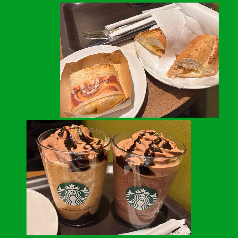 チョコレートのフラペチーノもサンドイッチもおいしかった🥰