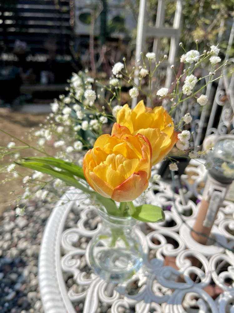 ① 八重咲きのチューリップの切り花を買ってきました♪