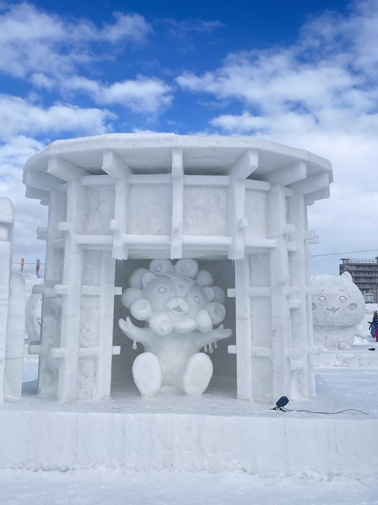 旭川冬まつりに作られていた大阪万博のキャラクターみゃくみゃく