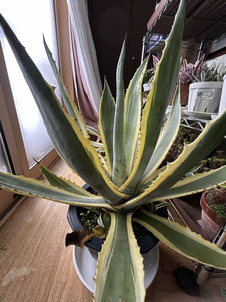 室内のアガベさんを観て癒されてます💕💕ウォーターマークって言うのかな、、、綺麗で不思議😘
