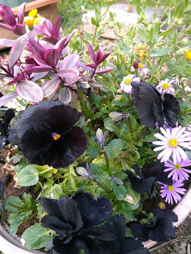 好きな黒のパンジーも入れて寄せ植えをしてみました😆✌️