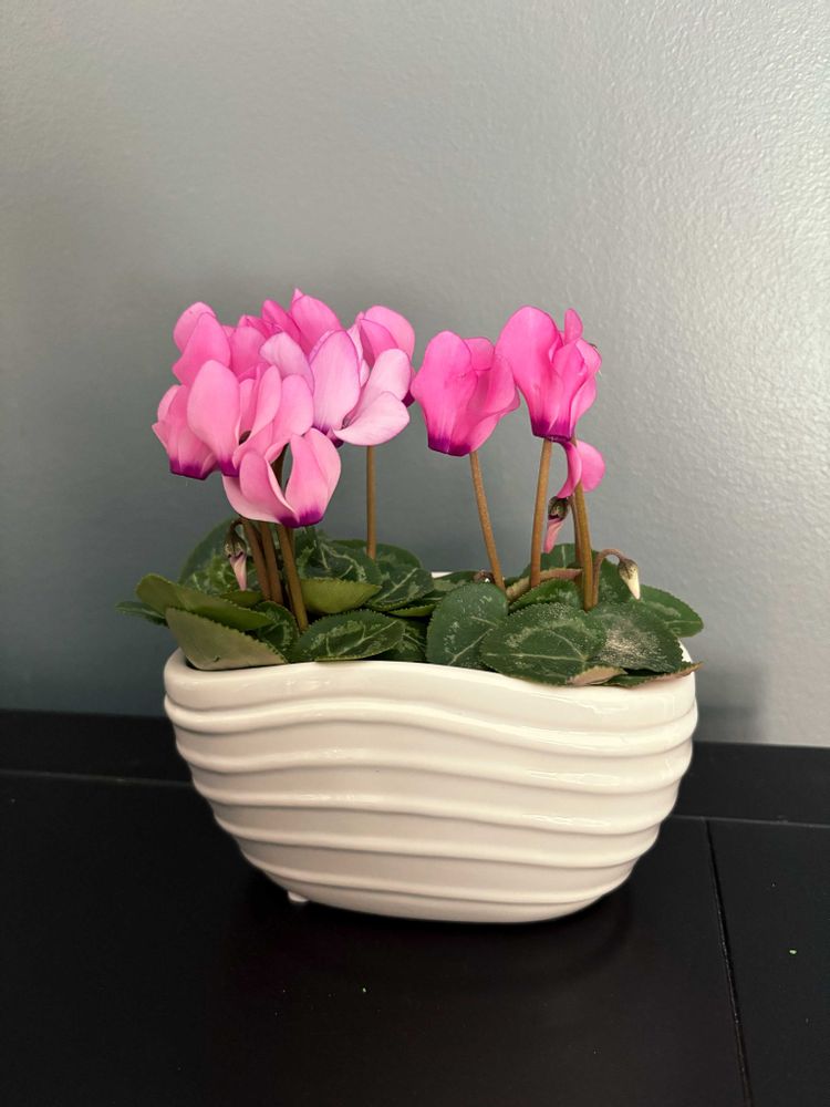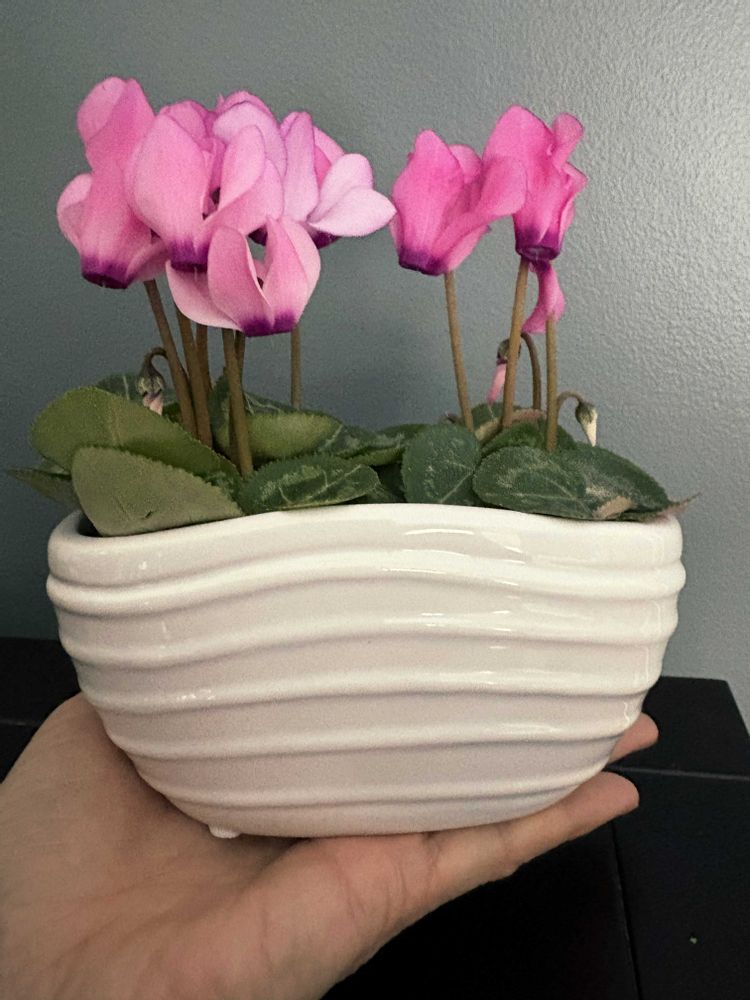 お友達からのかわいいシクラメン🩷鉢がシンプルで個性的でお気に入り🎯ありがとう。